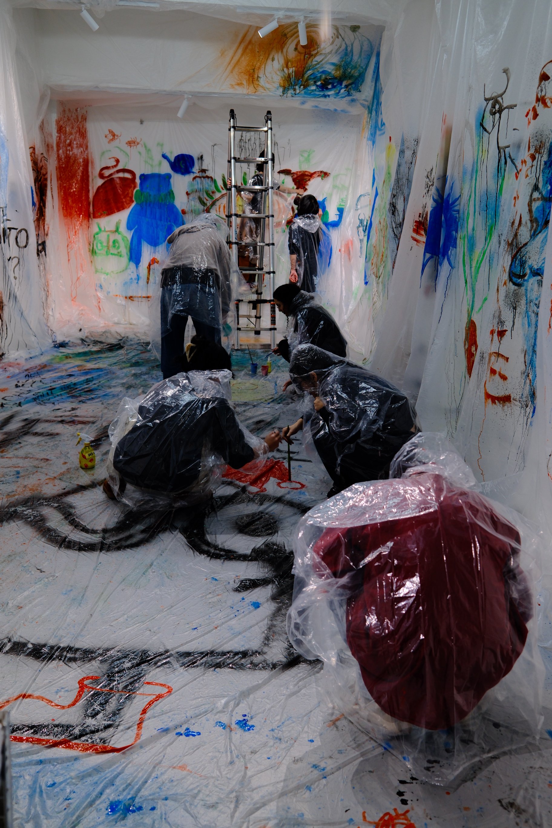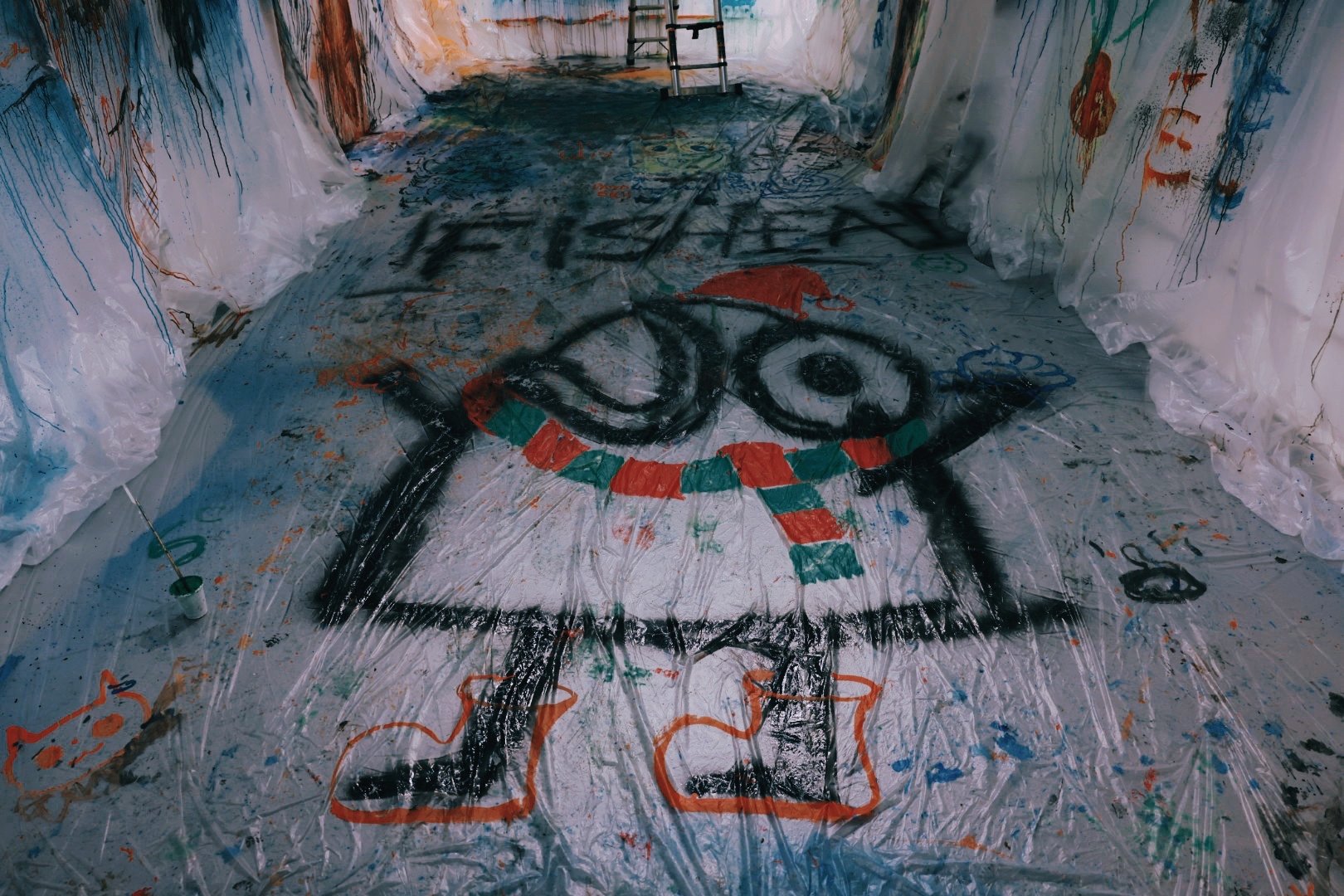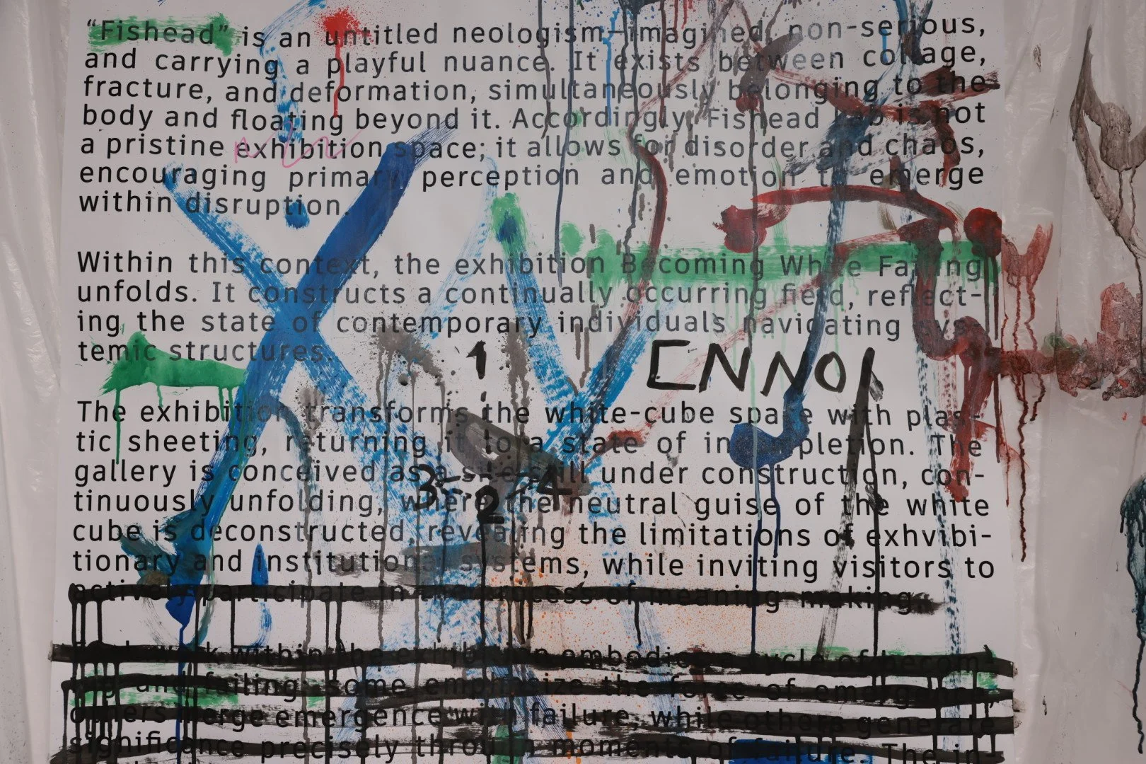 On the final day, December 7, Fishead Lab concluded the exhibition with a Graffiti Workshop. After the artworks were removed, the remaining space—wrapped in protective plastic film—was opened entirely to the public. Visitors were invited to draw, write, and mark the walls freely, returning authorship of the exhibition space to collective expression and bringing the exhibition to an open-ended close.